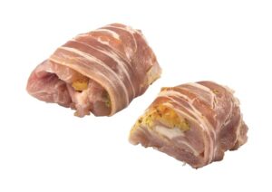 Gevulde kippendijen met een zachte vulling van abrikozen en mosterd.