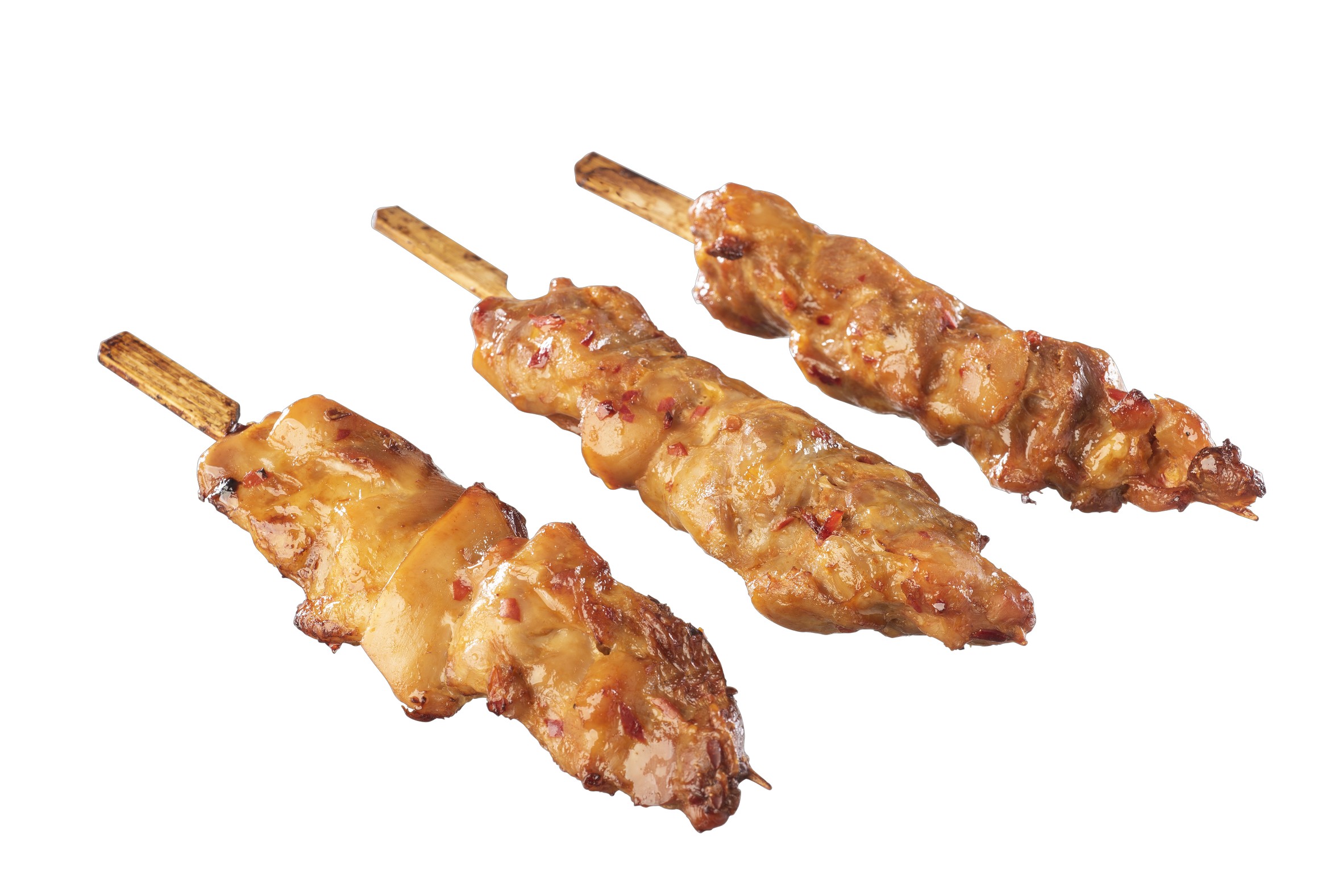 Kipdijfilet gemarineerd met W&G-huismarinade, aan spies geregen en ovengegaard.