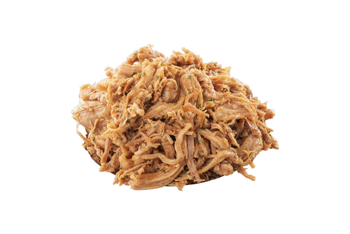 Slow cooked kalkoenvlees, geplukt en op smaak gebracht met een heerlijke saus en verse kruiden.