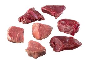 Gemixte wildpoulet, gesneden van vlees van zwijn, haas en hert.